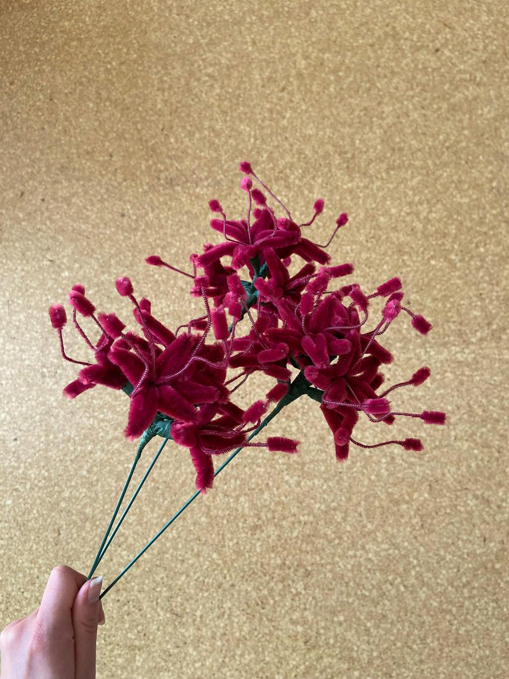 Mit diesem Set kannst du drei rote Spinnenlilien basteln.